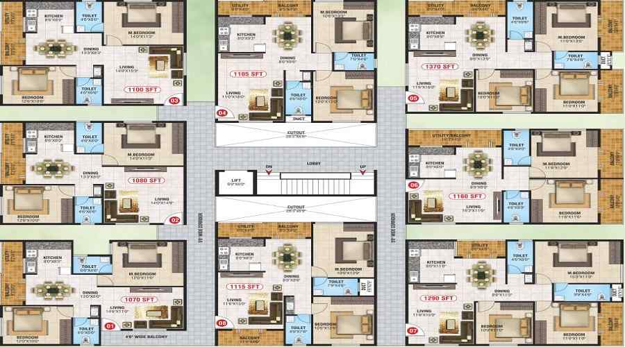 1070-1370 sqft.
